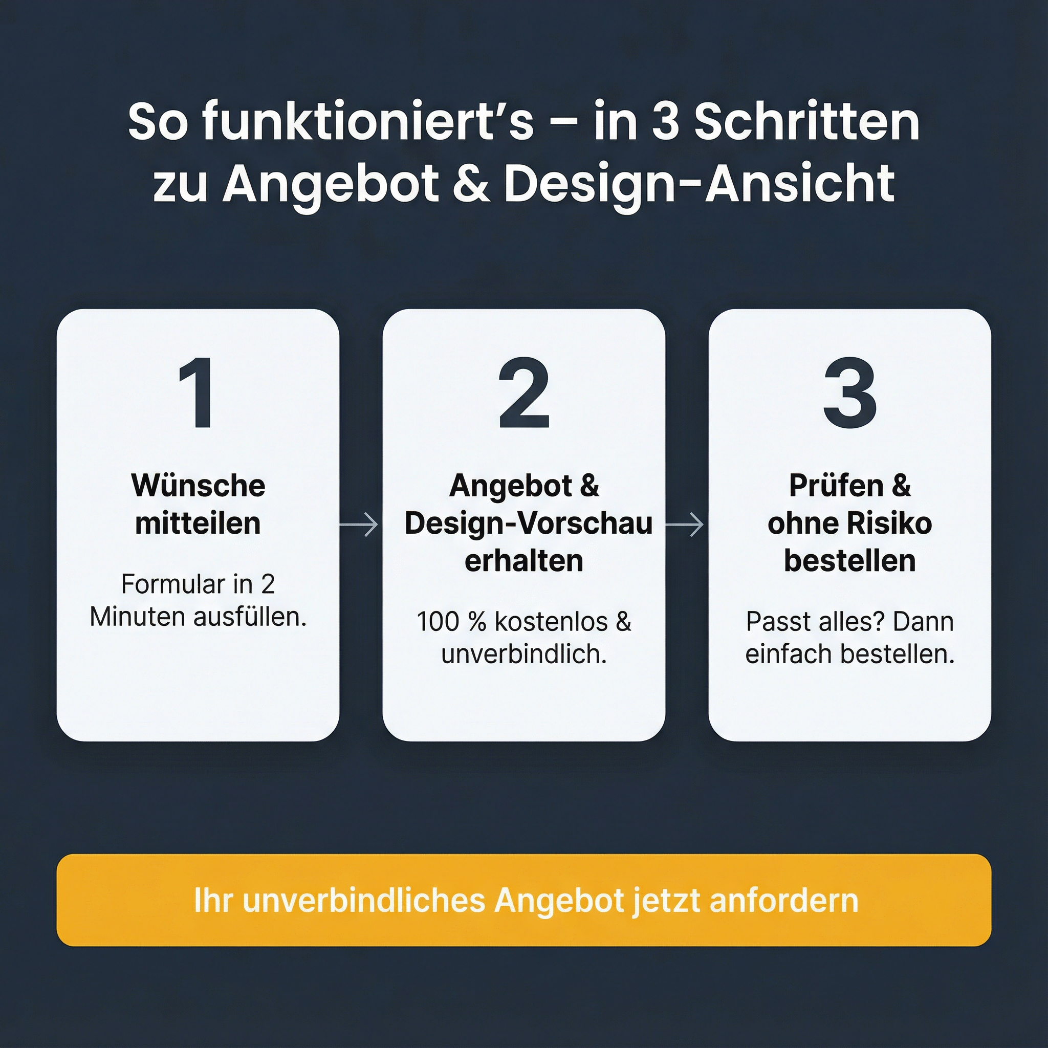 🕐 Nur 60 Sekunden zur Anfrage – Ihr individuelles Angebot mit Druckvorschau kommt im Anschluss.