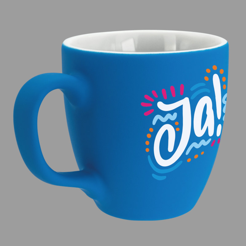 - Da es sich beim Softtouch um eine weiche Veredelung mit einer offenen Oberfläche handelt, kann es zum Beispiel durch Kaffee, Tee oder Lippenstift zu Verfärbungen kommen, die auch durchs Spülen nicht weggehen.