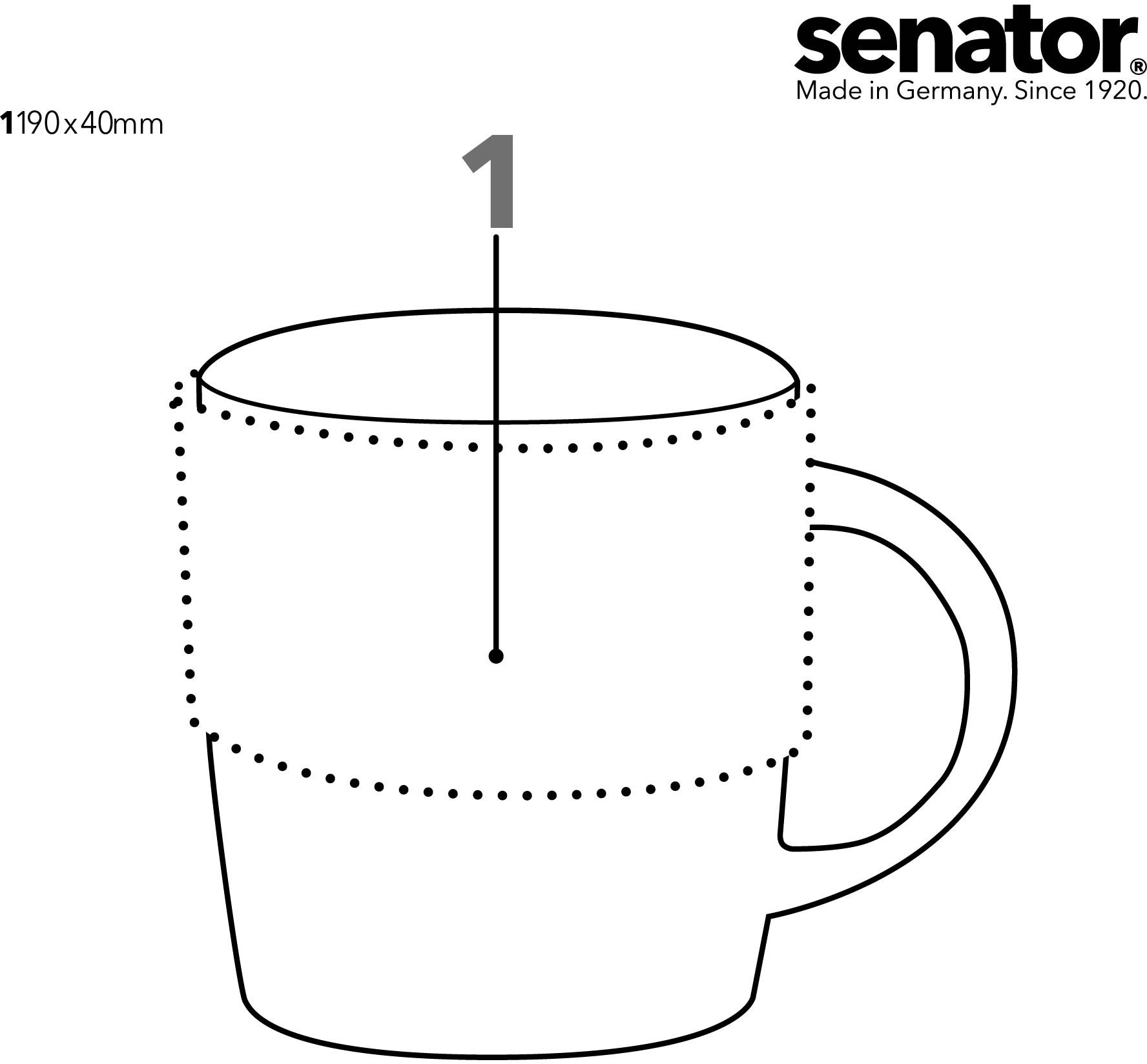 Bestellen Sie Ihre Senator Tasse Elegant ab einer Mindestmenge von 36 Stück und profitieren Sie von unserer schnellen und versandkostenfreien Lieferung innerhalb Deutschlands. Mit einer Lieferzeit von nur 5 Tagen nach Druckfreigabe sind Ihre individuell gestalteten Tassen im Nu einsatzbereit.